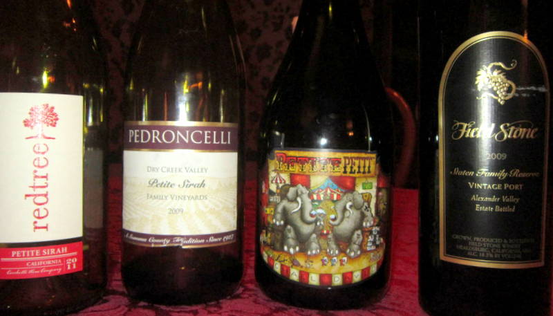 Recently I was sent many sample bottles of California Petite Sirah to taste and review. For those unfamiliar, Petite Sirah is originally from France and originally named Durif…yet it is non-existent in that country now. We can find the grape flourishing in San Luis Obispo, San Joaquin Valley, Napa, and Sonoma in California and in some parts of Washington. Dark in color with full body Petite Sirah is used in blending as well as a variety standing alone.