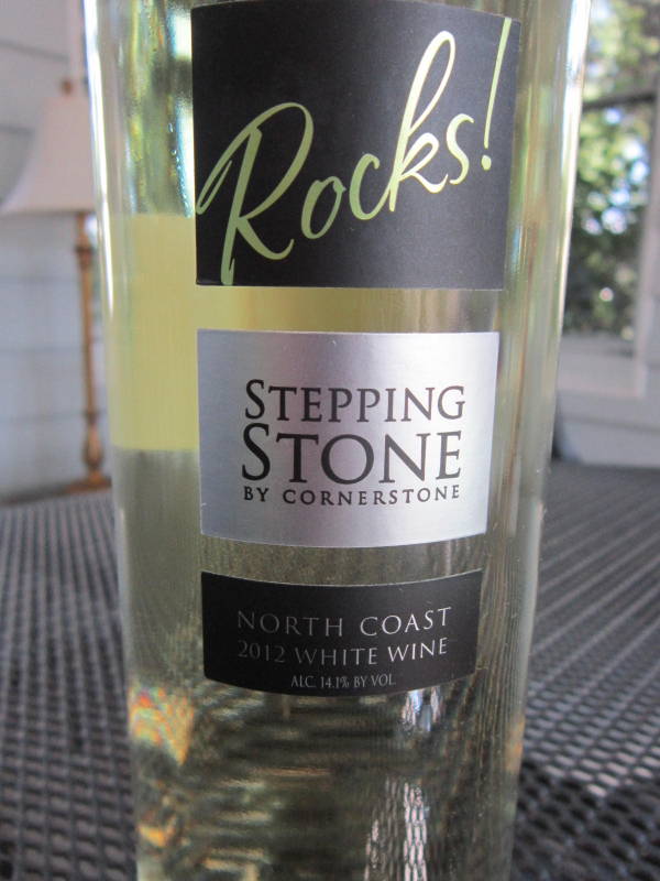 Well now. The blend of Chardonnay and Muscat Canelli from the North Coast of California in the 2012 Stepping Stone by Cornerstone White Rocks! is a secret, but Craig and Jeff can keep the secret to themselves if they just make more of this wine! The aromas of green apple and pineapple led to tastes of tropical fruit, melon, more green apple, and a bit of spice. Paired with appetizers and fun filled laughter before dinner, everyone loved the balance of fruit, acidity, and alcohol as well as the quality of the wine at the surprisingly affordable price point of $18.