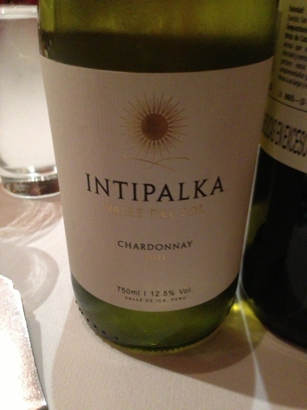 **Intipalka 2011 Chardonnay – Pale lemon in color with tropical fruits on the nose and palate, this was a decent Chardonnay. High acidity, medium body, and a crisp finish made this wine quite food friendly.