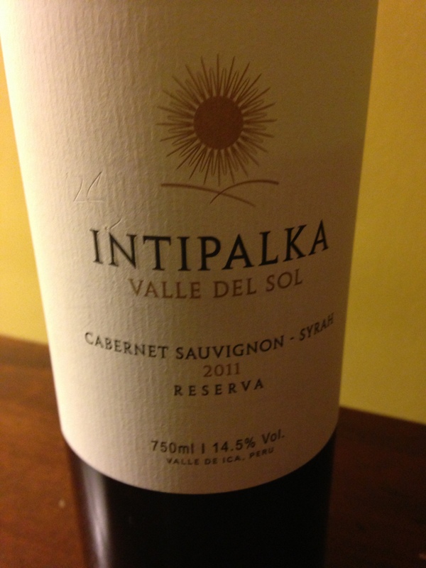 **Intipalka 2011 Cabernet Sauvignon/Syrah – Deep red and purple in the glass, I enjoyed the dark fruits, spice, jammy and black pepper tastes. Its integrated tannins and satisfying finish helped make our last evening in Peru that much more memorable!