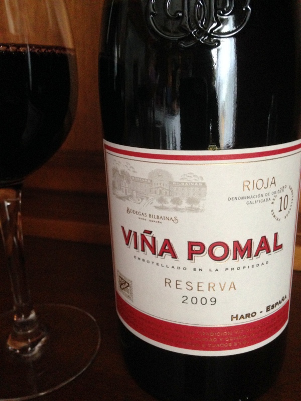 **Bodegas Bilbainas Vina Pomal Reserva 2009 – Deep, almost ink-like purple in the glass with aromas of warm spice, ripe red and black fruit, minerality, and a tingle on my nose were an indication that I would love this wine of 100% Tempranillo from Rioja. And I was not disappointed. Soft tannins, more spice, and subtle blackberry and dark plum notes on the palate were mouthwatering. Well balanced and structured, this wine was aged in new American oak for eighteen months. Although I paired this with a pizza laden with fresh vegetables and cheese, the Pomal Reserva can complement soups, appetizers, or burgers right off the grill! Cost is $21 and you may find it for less.