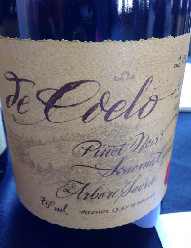 de Coelo 2012 Arbore Sacra – From the Benziger family, the de Coelo vineyards are on a hilltop five miles from the Pacific Ocean just north of Bodega Bay in the western portion of Sonoma County. The Arbore Sacra was soft with juicy red fruits, the minerality I love, and acidic raciness all of which brightened the nose and palate. Its velvety finish was completely satisfying. $75.