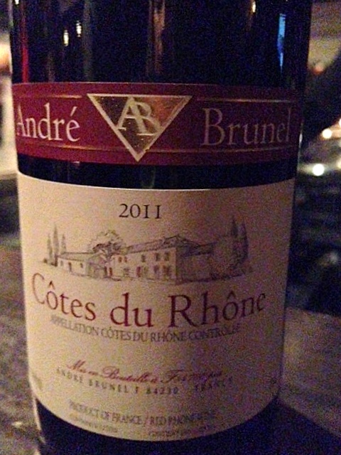 **Andre Brunel Cotes du Rhone 2011 – I was doing a subtle happy dance when I began whiffing the red berries, earth, and tingly spice in my glass! The 2011 Cotes du Rhone is a blend of 80% Grenache, 10% Syrah, and 10% Cinsault which adds up to a tasty, smooth wine. Mouthwatering, the medium tannins and more earth, cherries, spice, and red fruits led to a smooth, warm, lingering finish. This is what an entry level wine should taste like…i.e. a more expensive one! The cost is $12.