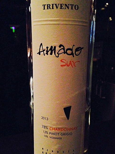 **Trivento Amado Sur 2013 – Apparently, Amado Sur means “Southern Love” and I was feeling it after the first few sips of this lovely, simple white blend. Consisting of 78% Chardonnay, 12% Pinot Grigio, and 10% Viognier, the aromas and tastes were of cool citrus, florals, and zest! Creamy and balanced, its crisp finish was short but pleasant and paired well with the passed appetizers of sushi, tiny grilled cheese sandwich bites with basil, and more. Cost is $12.