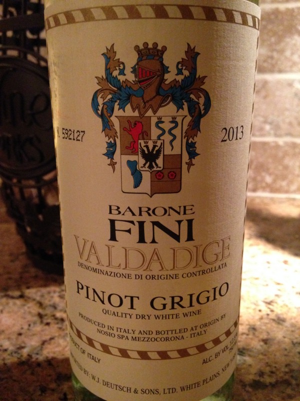 Barone Fini Pinot Grigio 2013 (sample) – Most people I know enjoy a good glass of two of Pinot Grigio – just ask any self respecting book club member. From Alto Adige in Northern Italy, this delicious wine showed aromas of flowers, citrus, pear, and crisp yellow apples. Its high acidity and rich tastes of more citrus were smooth and balanced which paired ever so nicely with grilled calamari and bruschetta. Cost is $12.