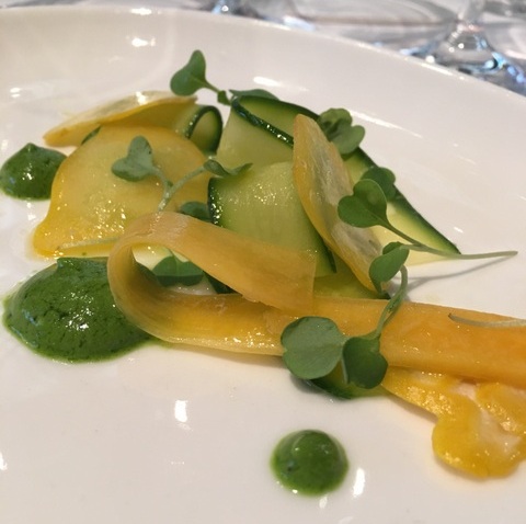 seasonal squash marinated in lemon, chilis, and fresh herbs, a recipe from Calchaquies in the Northwest Argentina. Fresh and light, the course was paired with