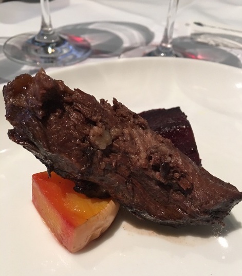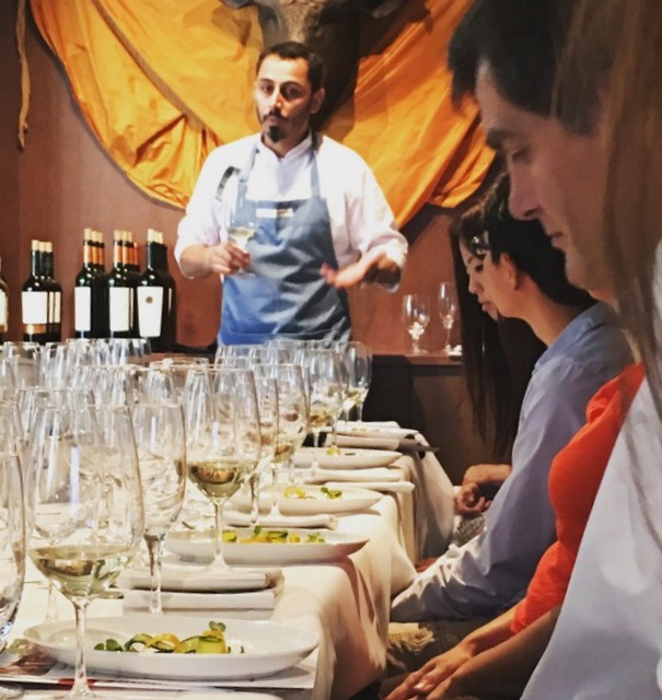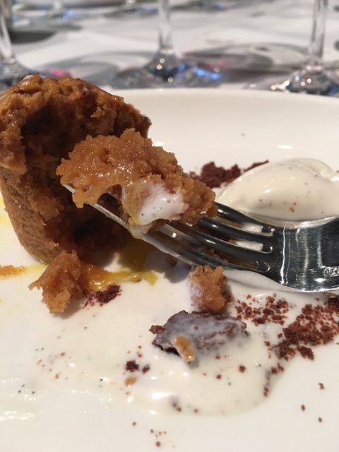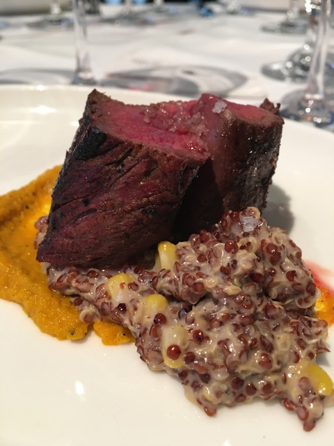 grilled filet mignon with smoked carrot puree, quinoa and sweet corn, a recipe from Patagones in Southwest Argentina. A blend of mostly Malbec with Petit Verdot, Cabernet Sauvignon, and Syrah, this expressive wine of pepper, eucalyptus, anise, black fruit, and chocolate was in spellbinding harmony with the smoky, salty flavors of the filet mignon…exactly what Chef Bustos and Cuneo intended.