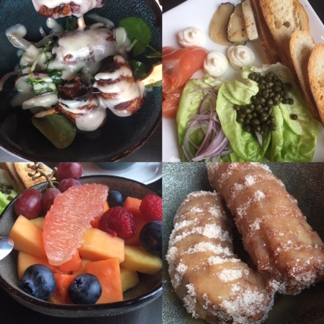 The Catalonian Brunch, served on Saturday and Sunday from 10am to 3pm, offers a myriad of tempting options. Guests are able to choose one dish from the first course and two from the second course…a difficult task, I might add. The tasting includes fresh, seasonal fruit and churros with espresso dulce de leche. As we sipped our first glass of Anna de Codorniu Blanc de Blancs, we selected a variety of mouthwatering items that would be representative of Spanish fare and bring out the best in our delightful cava. Trust me, the day was getting off to a delicious start.