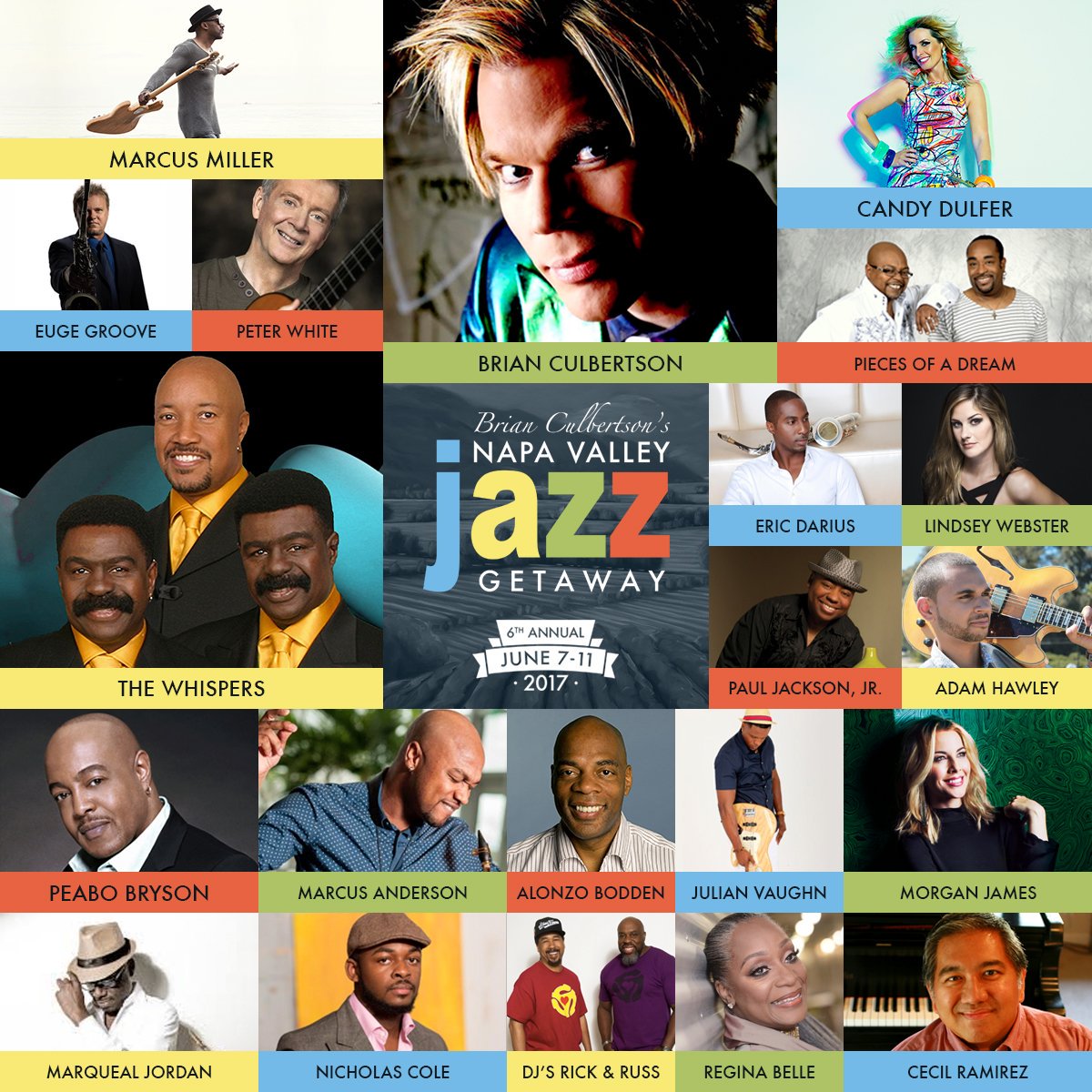 The 2017 Napa Valley Jazz Getaway promises to be the biggest to date. With themed shows such as Jazz Legend Night and Friday Night Funk Night and exclusive after-parties where attendees can meet and mingle with world renown jazz artists, this is an experience not to be missed. Brian will be joined by famous musicians including The Whispers, Peabo Bryson, Regina Belle, Eric Marienthal, Peter White, Keiko Matsui, Paul Jackson, Jr., and many more. Grab those tickets now!