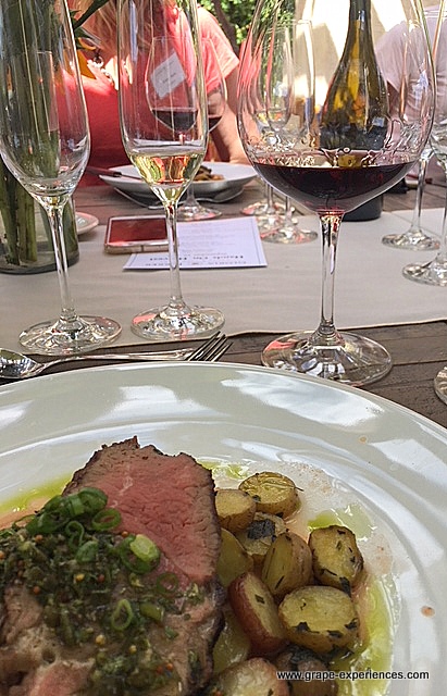 Grilled Leg of Sonoma Lamb, Fingerling Potatoes, Italian Butter Beans, and Sauce Verte were paired with notable 2015 Windvane Pinot Noir. Elegant with beautiful red fruit notes, the Pinot Noir was aged in French oak; 2000 cases were produced. Consider finding the Windvane wines-truly amazing.