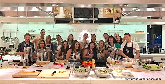 After our vertical tasting of Gloria Ferrer Royal Cuvée, our lively group walked to the original Williams Sonoma store, a mere 10 minutes away from MacArthur Place. We did our best to assist the talented (and, thankfully, patient) Chef Elizabeth in the preparation of a very special dinner. Warm Marinated Olives (click here for the recipe), Crab Salad, Chicken Butter with a Quinoa side (my cooking skills were put to the test with that dish!) and Fennel and Potato Parmigiana were mouthwatering. Although I could have sipped the Gloria Ferrer NV Brut Rosé all night long (it pairs with everything), I craved each pour of Royal Cuvée, Blanc de Blancs, and Gloria Ferrer Carneros Estate Grown Pinot Noir. Each wine was a lovely complement to the varied tastes of our exceptional dinner.