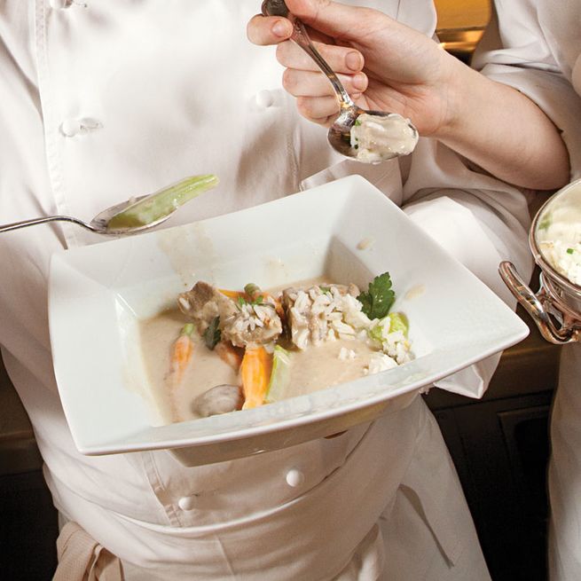 Chablis, Grand Cru, Les Preuses, Jean & Sebastien Dauvissat 2011 ($78) – Ahhh, the Grand Cru! Grown on 50-year old vines, this Chardonnay was impeccable. Elegance and grace, balance and beauty describe this wine that exuded aromas and flavors of lemon peel, lime, red apples, ripe citrus, salinity, oyster shells, and minerality (of course!). Subtle notes of French oak and a round mouthfeel were mesmerizing…the finish was clean and pure. Planted on stone, clay, and limestone soil, the vineyards from which the Chardonnay was grown are located on very steep slopes of the valley of Serein; the producers feel that this location is “the best slopes of the right bank of the Serein”. Although the wine was brilliant during the tasting, it can be cellared for up to 15 years (but I doubt you’ll do that!). To complement this stunning wine, rich and savory dishes will be delicious. A tender grilled filet with sauce, veal kidneys, or sweetbreads will be exceptional…but you may want to try Bresse chicken fricassee with morel mushrooms, a traditional pairing.