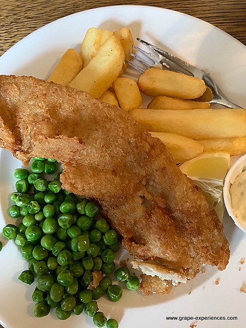 During the week I discovered a lovely pub, The George Inn, established in 1361 in the National Trust Village of Lacock in County Wiltshire, that satisfied my need for a bit of British history in the form of food! Lightly battered fish on my plate was a blend of the right amount of crunch and softness, the potatoes were tasty and the freshly cooked peas added color and creaminess. Simple, tasty, and yes, filling, I understand why this combination was a staple in many households.